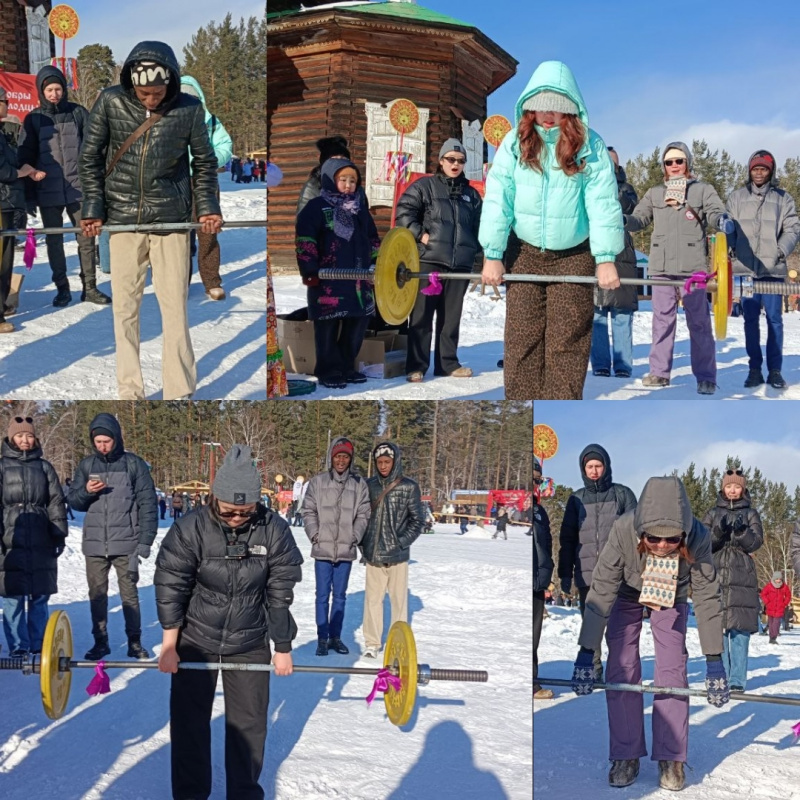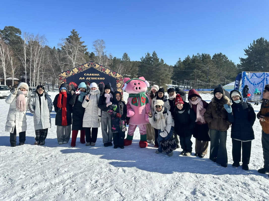 On February 22, 2026, a large, friendly group of international students, along with curators N.N. Alekseeva and B.V. Batueva, traveled on three buses to the traditional Maslenitsa festival.